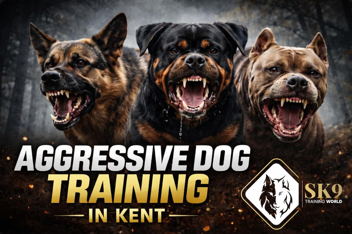 If you are looking for aggressive dog training in Kent or an aggressive dog trainer SK9 Training World provides an assessment-led pathway focused on safety, control, and structured rehabilitation. We work with aggressive dog behaviour for suitable cases where risk must be screened and managed correctly.